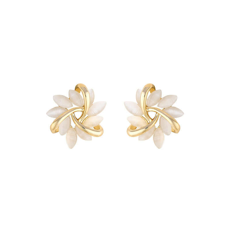 Delicate petals meet golden curves in the Olive Bloom Earrings—a radiant ode to nature’s quiet strength. Crafted with pearlescent leaves and soft, organic lines, they evoke harmony, femininity, and heritage with every glance.